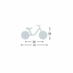 La draisienne a pour dimensions 73 x 29 cm. Elle est Ă©quipĂ©e de roues et pneus souples en caoutchouc, pleins sans gonflage, ayant pour ETRTO 50-215.Â