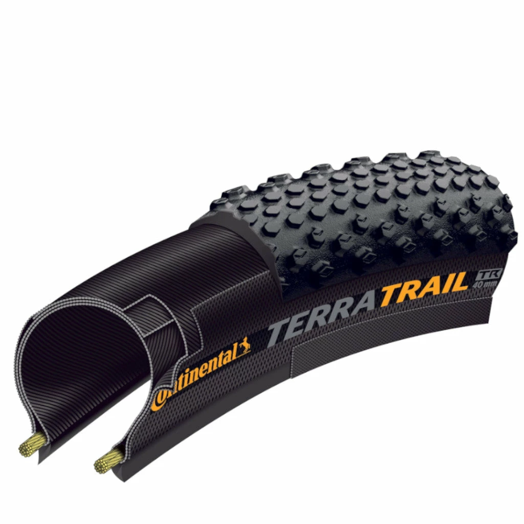 – Le pneu Terra Trail 700x 40C 28 x 1.50 avec un ETRTO de 40-622 en noir, noir/crème et noir/marron.