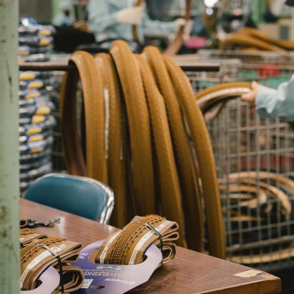Série limitée du pneu gravel Panaracer GravelKing SK en deux élégants et amusants coloris : marron gingembre et bleu ciel tendant au gris.