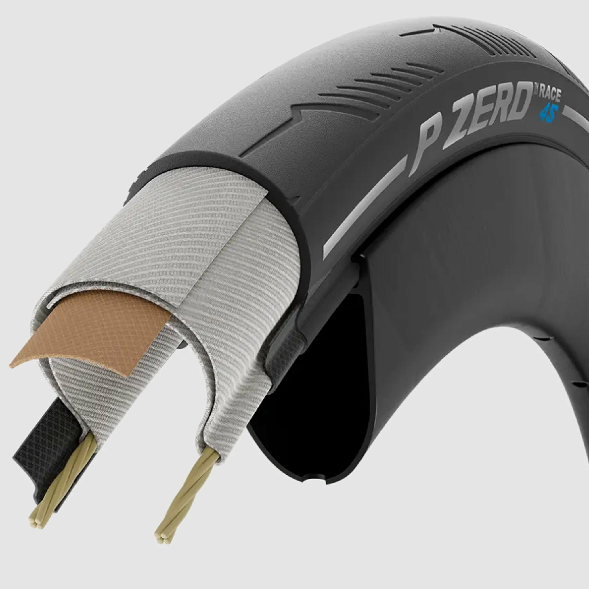 Le pneu Pirelli P Zero Race 4S a des tringles souples et une carcasse de 120 TPI. Il est proposé de couleur noire en diamètre 700, pour deux sections :