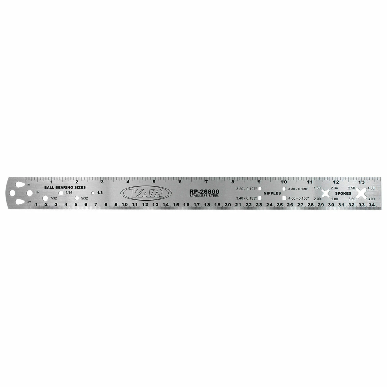 Grâce à ses calibrages intégrés, la règle Var RP-26800 mesure très rapidement le diamètre des rayons, des écrous de rayons et des billes. Vraiment pratique !